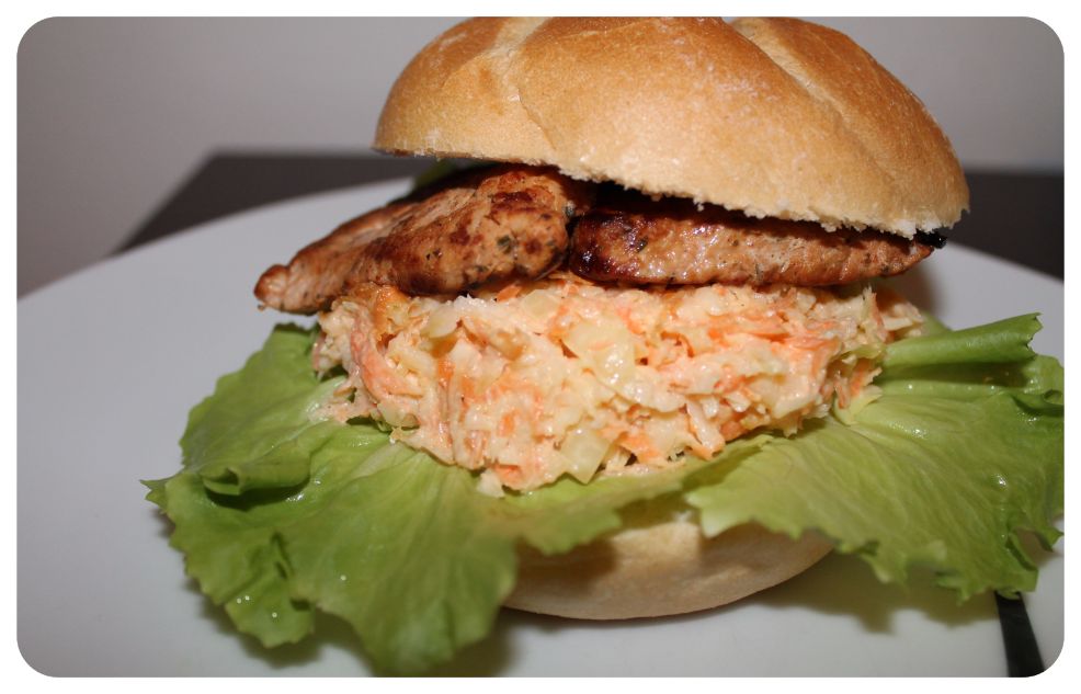 Coleslaw – ein Krautsalat der wirklich lecker ist. Coleslaw, Fleisch und 2 Blatt Salat und das Sandwich ist auch schon fertig zum Genießen. 🙂