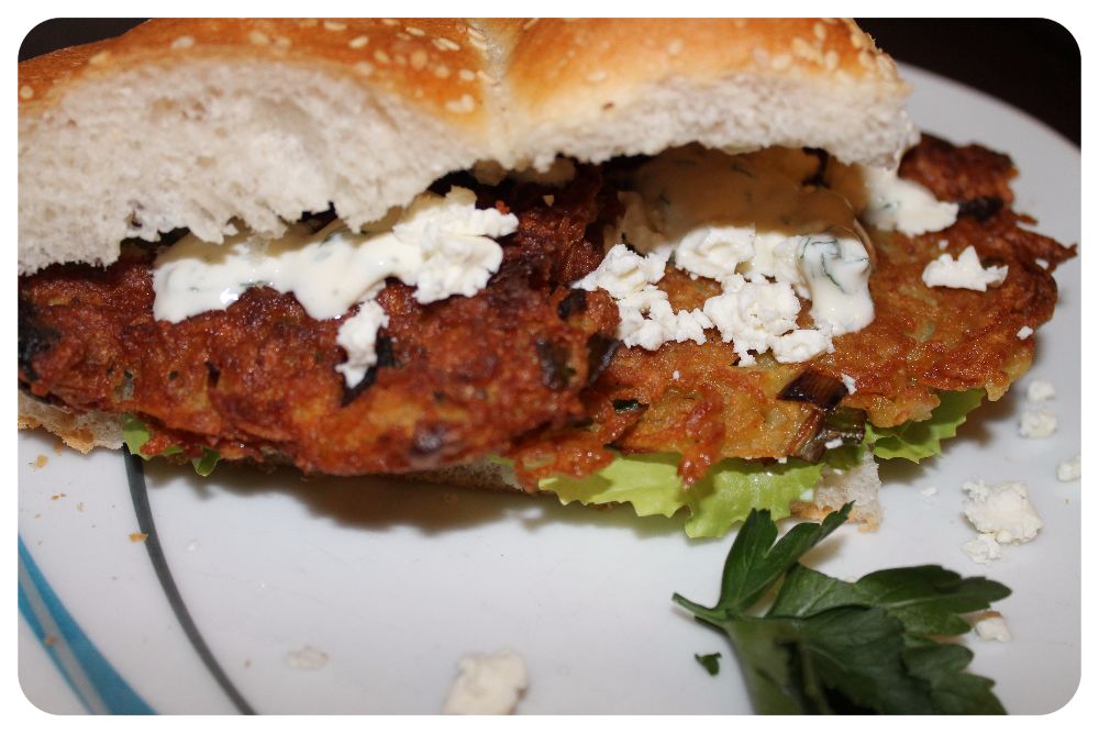 Knusprig, saftig, geschmackvoll und herzhaft. Heute gibt es ein ganz besonders leckeres Sandwich. Erdäpfel- Lauch- Puffer im Fladenbrot mit Feta- Käse und Dip. 🙂 Eines meiner Lieblingsrezepte.