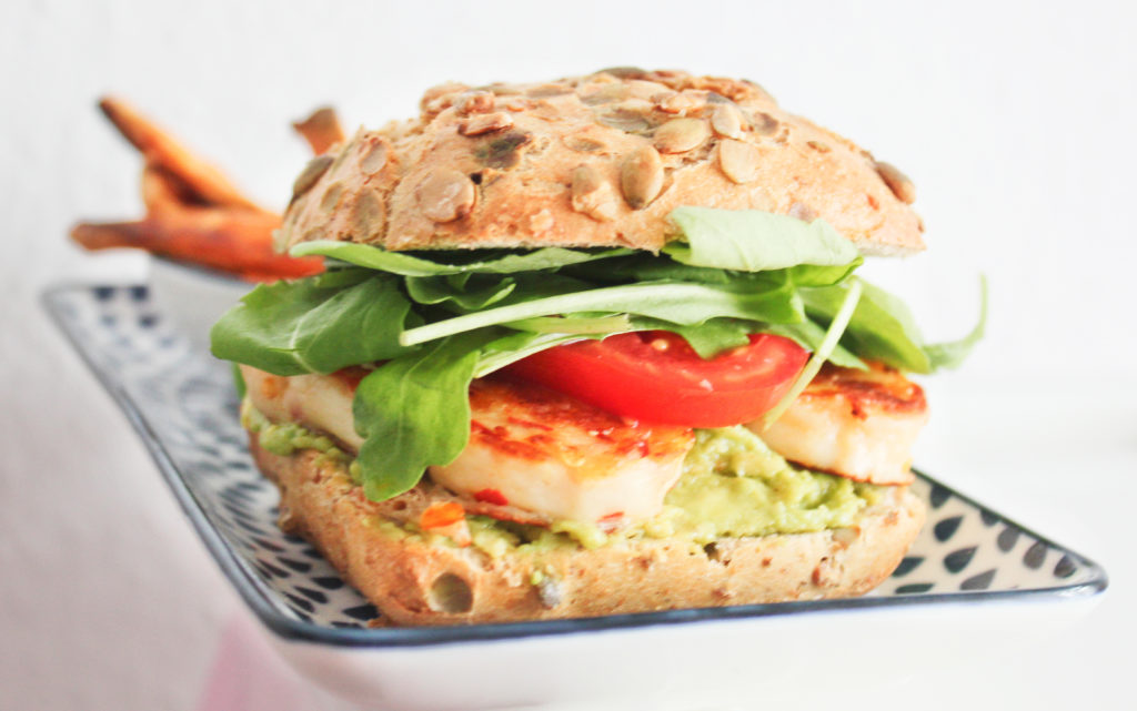 Avocado – Halloumi – Burger mit Süßkartoffel Pommes 〈Gastbeitrag〉