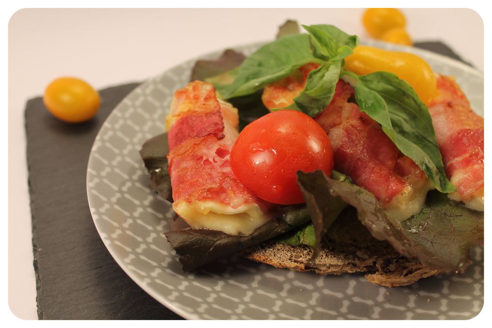 Wie der Titel unschwer erkennen lässt, gibt es heute ein Sandwich mit Brie im Speckmantel. Bei gegrilltem oder gebackenem Käse kann ich einfach nicht