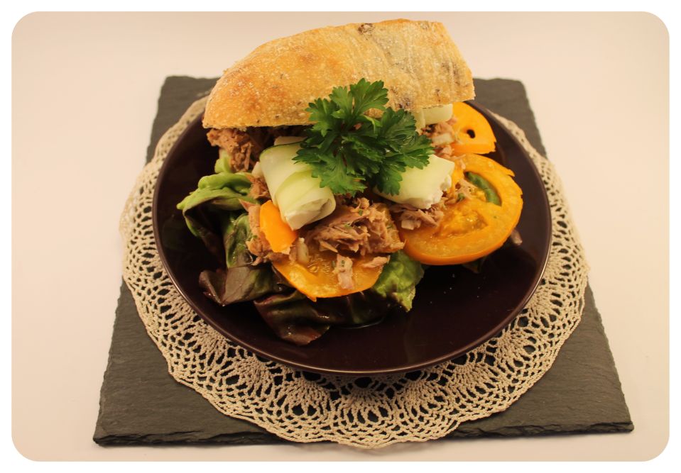Heute hatte ich Lust auf Fisch, besser gesagt auf Thunfisch. Ein paar gelbe Tomaten haben sich auch noch in den Untiefen meines Kühlschranks finden lassen. Da hätte ich ja schon fast alle Zutaten aufgezählt. 😉 Wenn das Wetter eher grau in