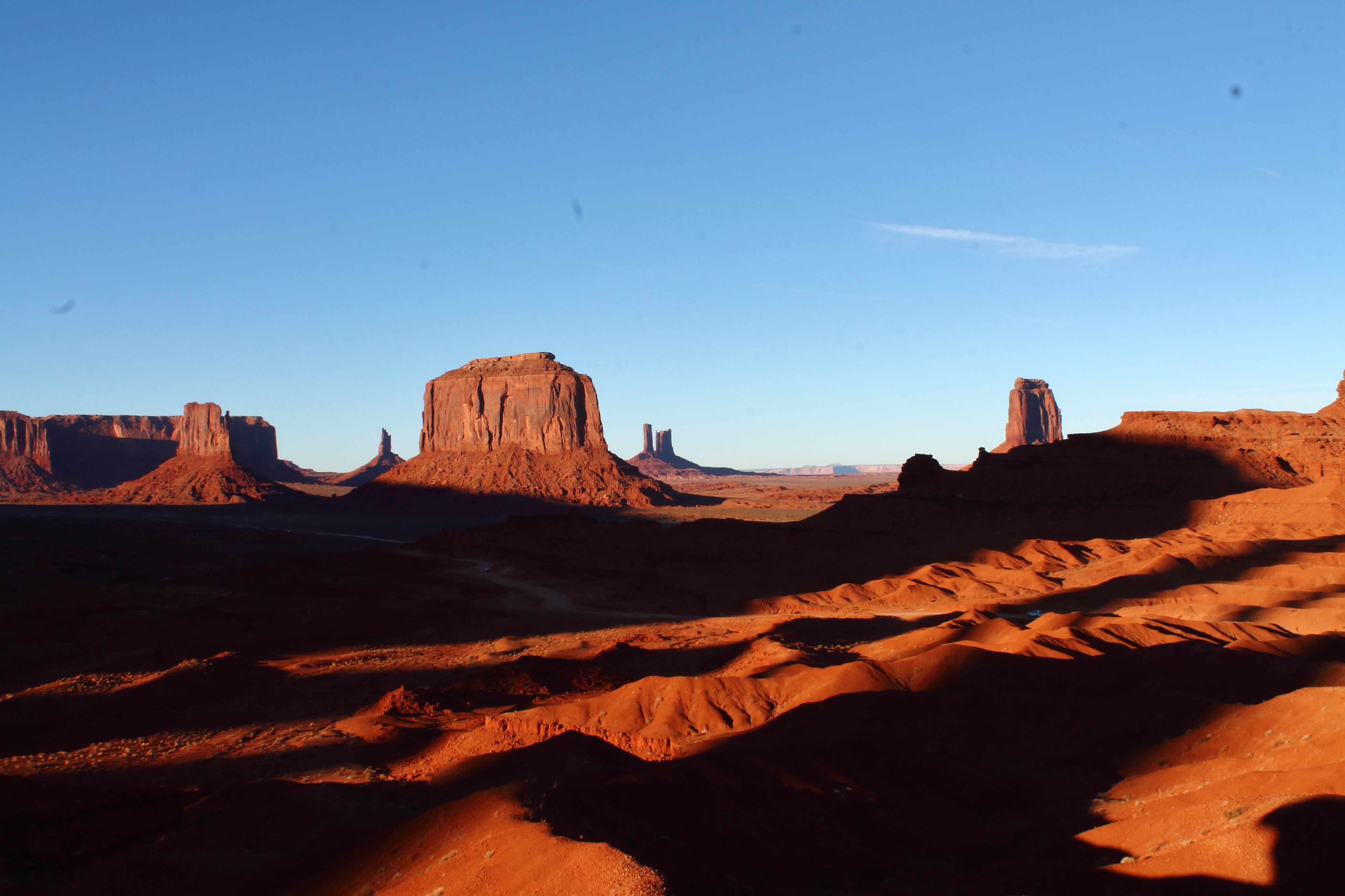 Houston stand ebenso auf unserem Programm, wobei wir am Weg dorthin noch eine Nacht in Sulphur geschlafen und zuvor einer Rum-Destillerie (Bayou) einen Besuch abgestattet haben. Ich trinke zwar fast keinen Alkohol mehr, doch das Bayou Satsuma hat es mir angetan. Davon musste ich unbedingt eine Flasche mitnehmen. 😊 In Houston haben wir das Space Center besucht und wir können auch hier einen Besuch wärmstens empfehlen. Es ist anders als das Kennedy Space Center in Florida und thematisiert eher die ehemaligen Apollo-Missionen. Nach Housten ging es weiter über Austin, Dallas und Amarillo Richtung Monument Valley. In Austin wurde Mr. B. von einem Auto angefahren (es ist Gott sei Dank nichts passiert), in Dallas haben wir unser erstes Eishockey Match gesehen und in Amarillo wurden wir von Schnee überrascht. Bevor wir nun endlich das Monument Valley erreicht hatten, haben wir noch Stopps beim Four Corners Monument und einer Aztec Ruin (Azteken Ruine) eingelegt. Was ich bis dato nicht wusste und mir im Monument Valley bewusst wurde ist, dass ich diese rotfarbenen Gesteinsformationen wirklich beeindruckend finde. Ich liebe die natürliche, starke Färbung, die Landschaft, die karge Vegetation – einfach alles. Meine Augen konnten sich nicht satt sehen und am liebsten hätte ich alle zwei Meter ein Panorama-Foto geschossen.