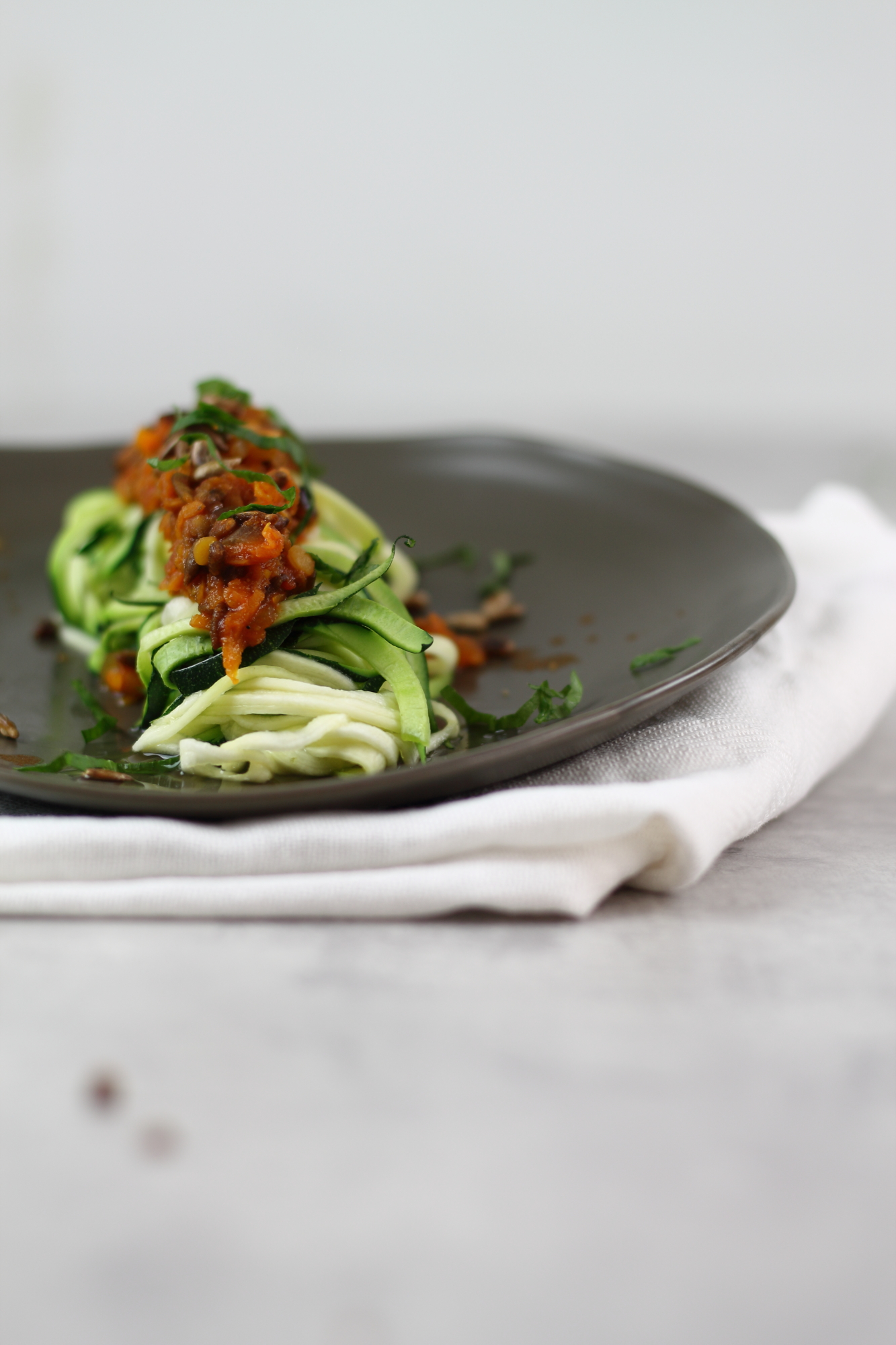 Sommerlicher kann ein Gericht kaum sein (meiner Meinung nach). Köstliche Linsen in einer feinen Tomatensauce gegart und dazu knackige Zucchininudeln (Zoodles). Noch dazu ist das Ganze vegan – wer das nicht möchte, der/die kann sich ja zum Schluss noch eine größere Menge geriebenen Hartkäse oder Mozzarella drauf geben. Was ich an diesem Gericht am liebsten mag, sind die Zoodles. Die gehen so schön schnell, sind leicht bekömmlich und zaubern Farbe aufs Teller. 🙂