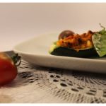 Ca. 1 cm hoch kochendes Wasser in die feuerfeste Form gießen. Anschließend kommt das Ganze für ca. 20 Minuten in den vorgeheizten Backofen (180°C Umluft). Die Zucchinischifferl sind fertig, wenn die Zucchini weich, aber nicht matschig, sind.