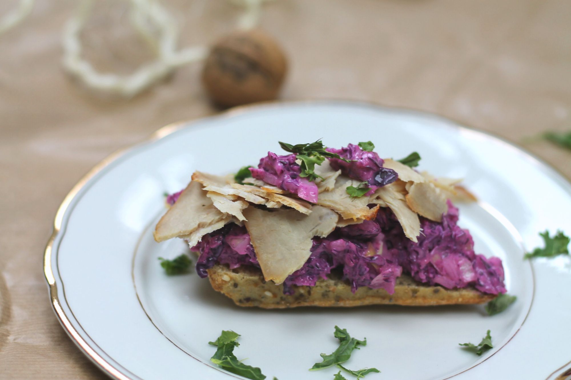 Die Weihnachtsfeiertage neigen sich dem Ende zu. Was bleibt sind nicht zusammengegessene Köstlichkeiten und ein paar Kilos mehr auf der Waage. Schnell kommt die Frage auf „Was sollen wir aus dem restlichen Essen nun zaubern?“ 🙂 Nur gut, dass heute Sandwich- Montag ist. Das heutige Rezept bringt Frische und Farbe aufs Teller. Zudem wird der Braten vom Vortrag optimal verwertet und köstlich ist es noch dazu. 😉