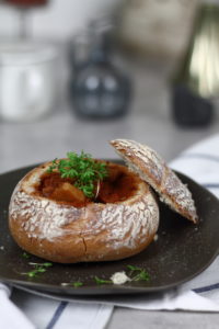 Weihnachtsmenü: 2. Gang – geschmorter Rotkrautkopf mit Maroni- Apfel- Semmelfülle, Kartoffelguperl und glacierten Karotten & gemeinsame Zeit mit den Liebsten