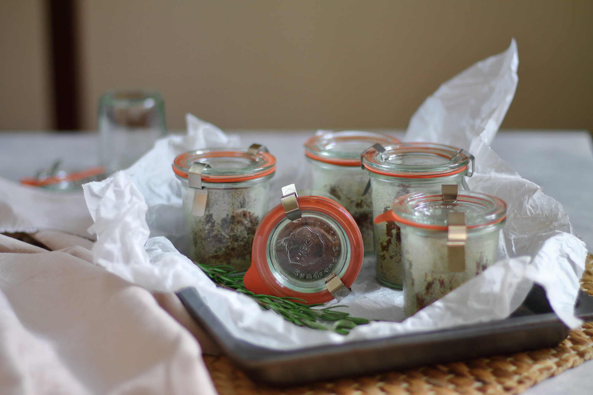 Heute gibt es kein Sandwich- Rezept (obwohl Montag ist), da ich noch ein letztes Rezept für den Austria Food Blog Award hochladen wollte. Eigentlich hätte es schon letzte Woche den Weg auf den Blog finden sollen, doch ich wollte noch damit warten, da ich auch sichergehen wollte, dass es so passt. Heuer gibt es beim besagten Award eine Kategorie die sich „Kreativ Einkochen“ nennt und ich habe richtig lange darüber nachgedacht, was ich einkochen soll. Ich habe mich dann an einem Melonensirup versucht und dieser ist auch köstlich geworden, doch ich habe schon ein Cocktail-Rezept eingereicht und wollte daher nicht noch ein Cocktail-ähnliches-Rezept hochladen. Nach langem Überlegen und Recherchieren bin ich auf „Kuchen im Glas“ gestoßen – also eingekochter bzw. eingerexter Kuchen. Schlussendlich habe ich dann versucht den Sommer im Glas in Form von Kuchen einzufangen. Und siehe da – es hat geklappt. Du fragst dich jetzt vielleicht (oder vielleicht auch nicht) wie ich den Sommer nun eingefangen habe und ich habe in mittels Rosmarin eingefangen – der Duft nach Urlaub, nach Meer, nach Freizeit und Sonne.