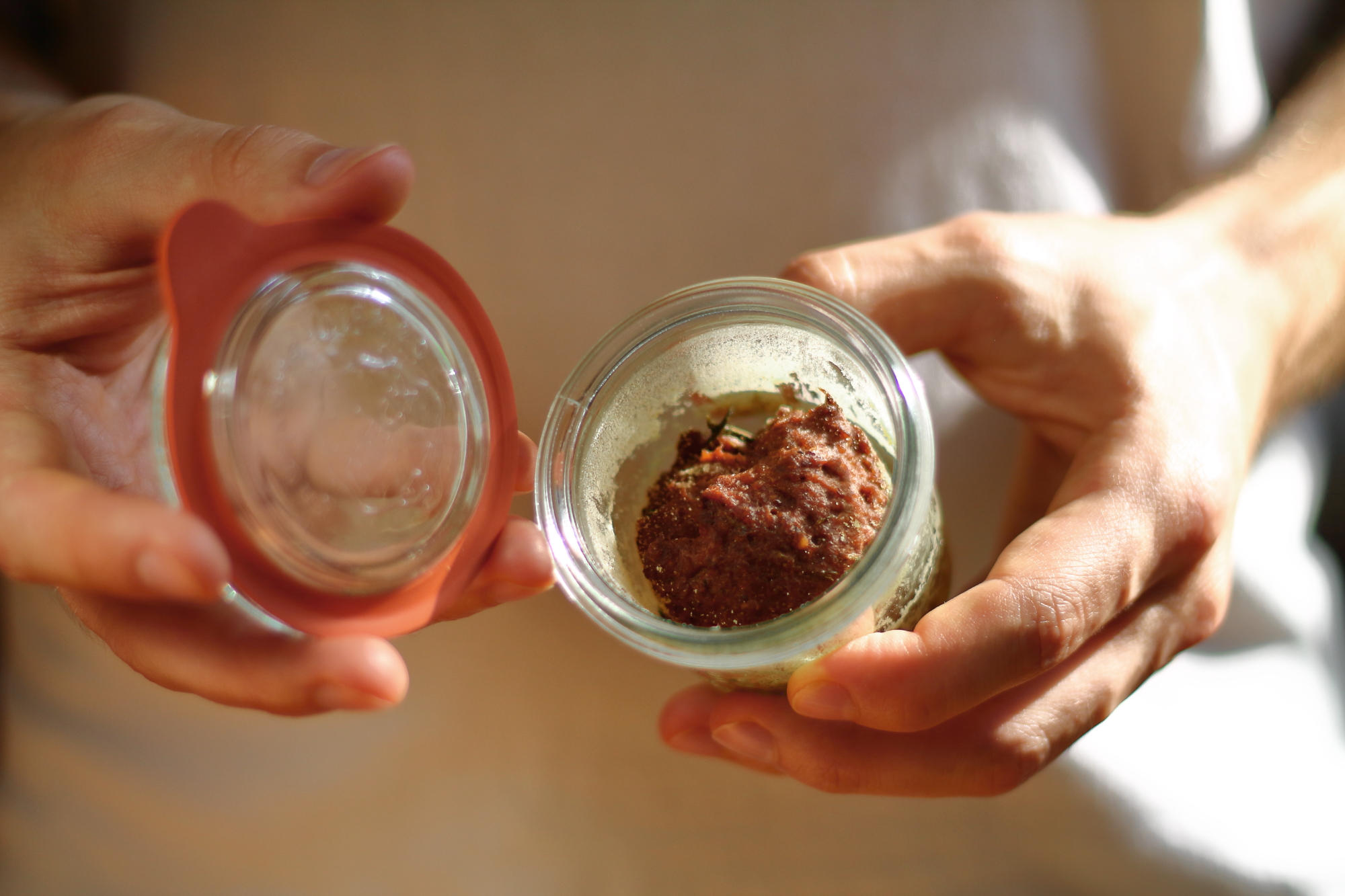 Wenn die Gläser erkaltet sind, können die Klammern vorsichtig entfernt werden. Kann das Glas am Glasrand angehoben werden und es bleibt alles zusammen, so hat sich im Glas Vakuum gebildet – genau das wollen wir! 😉 Jetzt sind die Brownies fertig eingekocht.