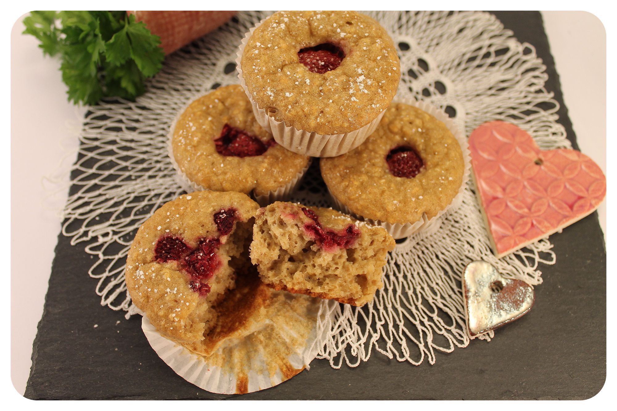 Es kommt mir vor wie eine Ewigkeit, dass ich in der Küche gestanden bin und für den Blog gebacken habe. Umso schöner war es jedoch und es kann sich auf jeden Fall sehen lassen. Und das Beste daran ist, dass es auch noch lecker schmeckt. Wie der Titel es schon verraten lässt, habe ich heute Haferflocken- Himbeermuffins für euch. Sie enthalten keine Butter oder Öl und es wird nur wenig Zucker benötigt. Die Himbeere in der Mitte verleiht dem Ganzen eine fruchtige Note und eine süß-saure Überraschung. Ich liebe ja Haferflocken in jeder Form und Konsistenz und daher musste dieses Rezept einfach online gehen. 🙂
