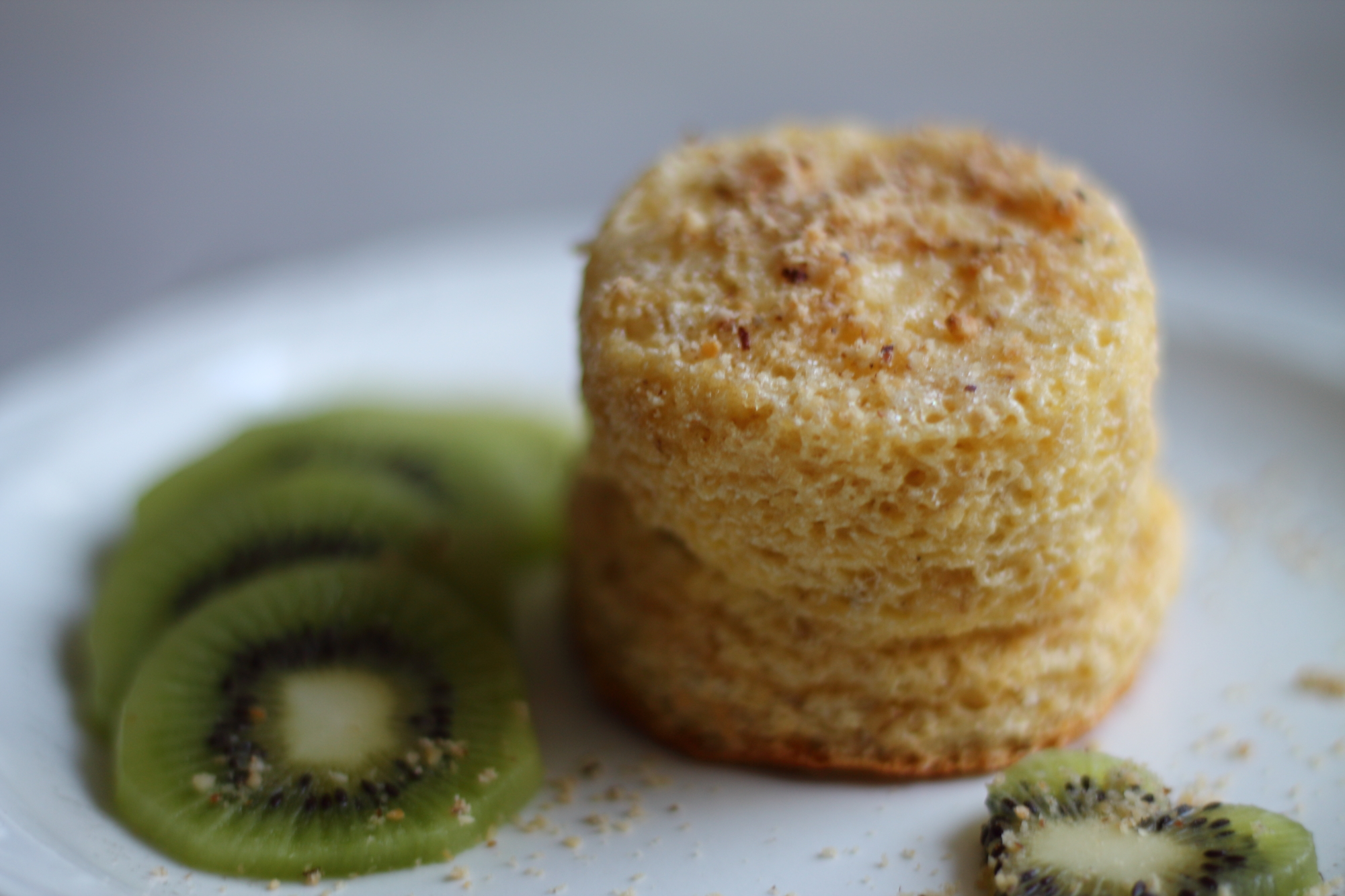 Die Soufflés nach dem Backen auf Teller stürzen oder in der Tasse servieren. Mit den Früchten garnieren und den geriebenen Nüssen toppen.