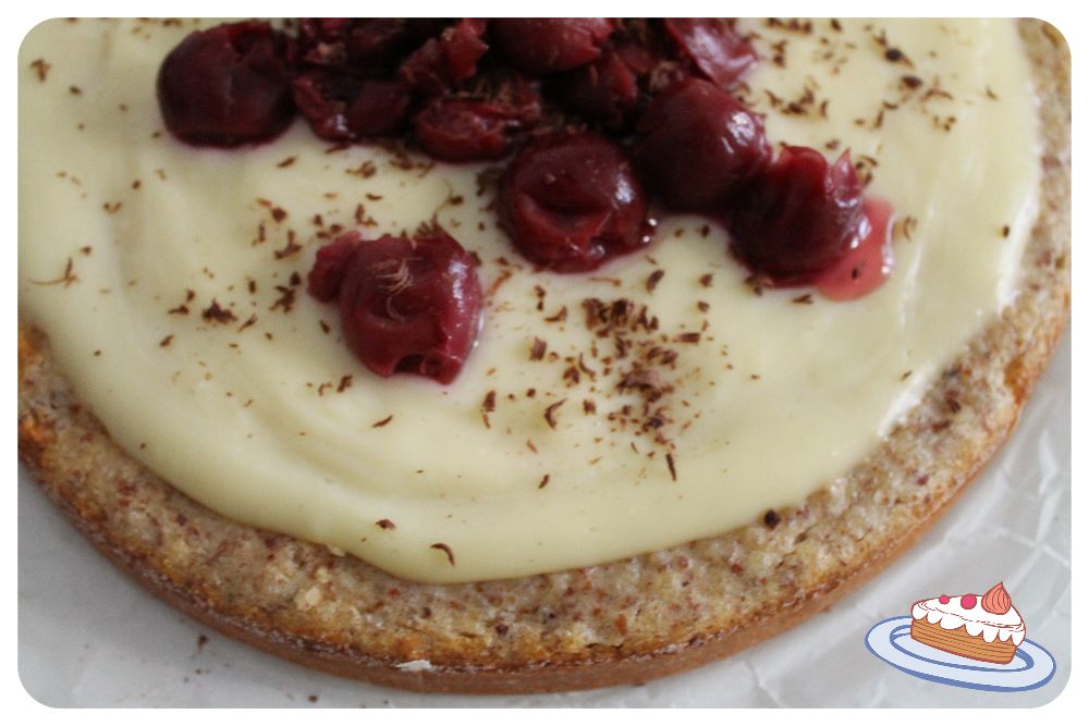 Den Kuchen auf der Oberseite mit 1 TL Marillenmarmelade bestreichen und den Pudding darauf gießen. Der Pudding sollte dabei nicht zu heiß sein. Zum Schluss kommen noch die abgetropften Weichseln auf die Puddingmasse – ein bisschen festdrücken. Wenn der Pudding auf dem Kuchen erkaltet ist, dann kann man noch Kochschokolade darauf raspeln.
